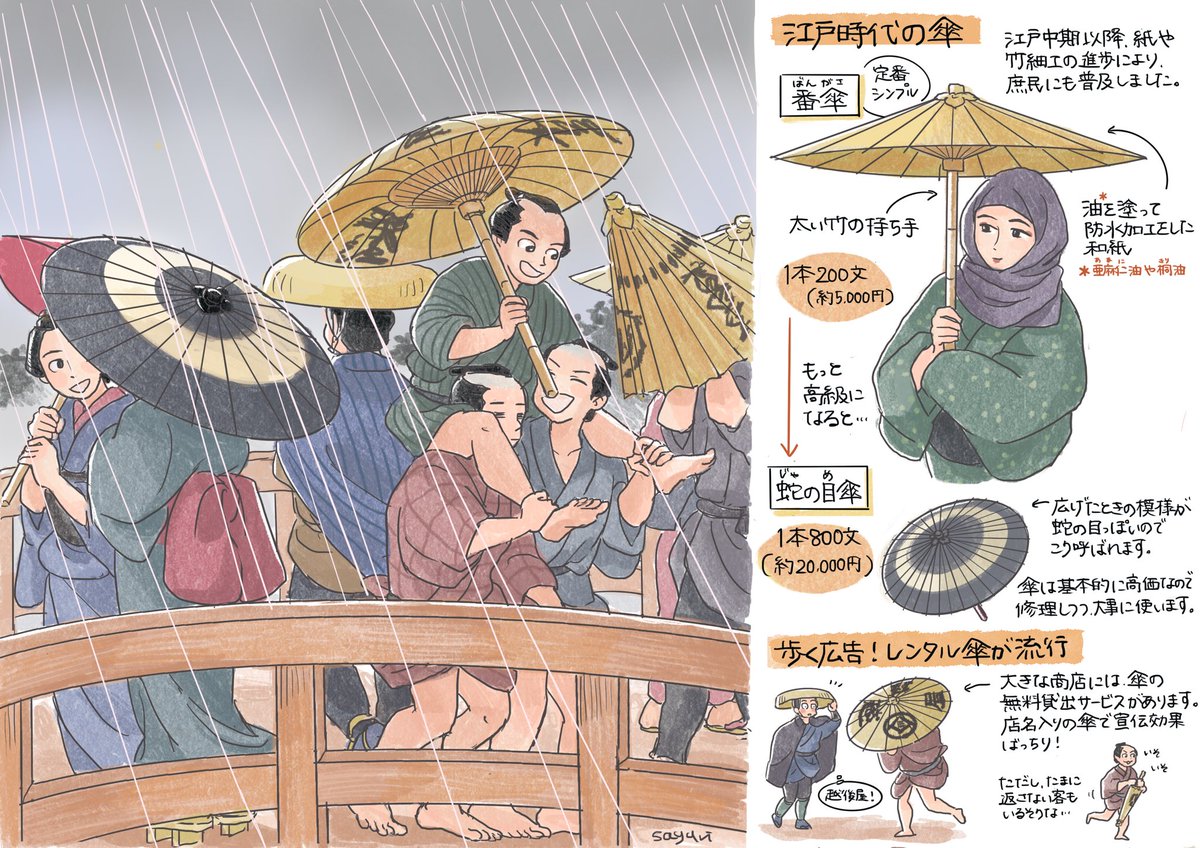 江戸時代の傘事情 手で持つ傘が広まる 歩く広告の流行など 身近に感じられて面白い いい内職だったのかも Togetter
